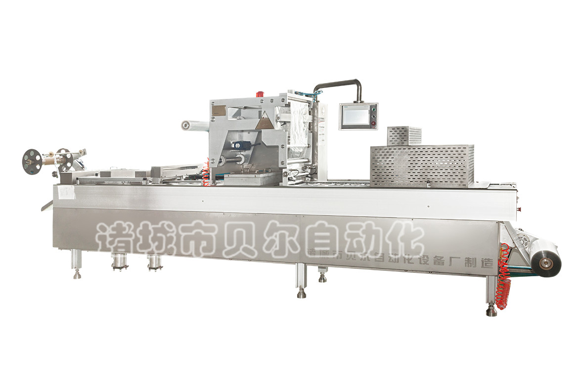 1、控制系統先進 該系列包裝機采用德國西門子觸摸屏、PLC及步進控制系統,配用原裝德國普旭真空泵。整機通過人機界面智能調節方便,步進精度高,各動作協調一致,自動化程度高。 2、功能齊全 (1)可以在同一臺設備上選用彩膜或光膜覆膜形式; (2)可以根據用戶產品包裝要求配備自動打碼/噴碼系統; (3)根據用戶產品包裝要求在抽真空的基礎上,可以充N2、02、CO2 混合氣體或單一氣體,氣體混合比例可以通過氣調控制器方便調節; (4)設備配備斷相保護系統,漏電保護系統,相序保護系統,避免因停電,漏電以及人工操作失誤而造成的設備損壞,同時保障操作人員人身安全; (5)設備配置上下模自動糾偏系統,通過電腦自動感應覆膜與底膜精準走向,及時調整覆膜材料在生產過程中出現的纏繞端面不平問題,使產品包裝外觀更加完美,同時避免膜材浪費。 四、主要技術參數 見附件圖片
